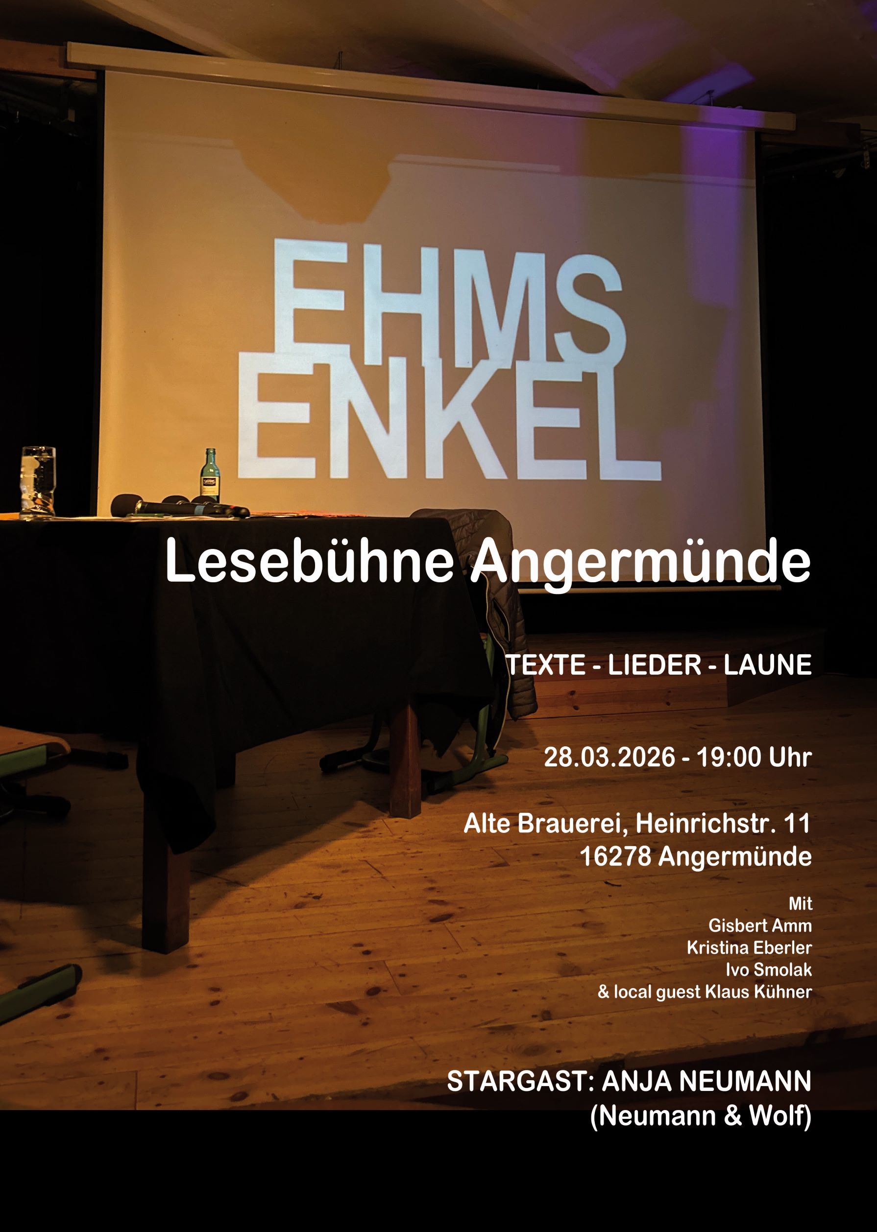 Ehms Enkel ist die erste und aktuell einzige Lesebühne der Uckermark. Sie findet an handverlesenen Terminen in Angermünde statt. Die Mitglieder sind:
